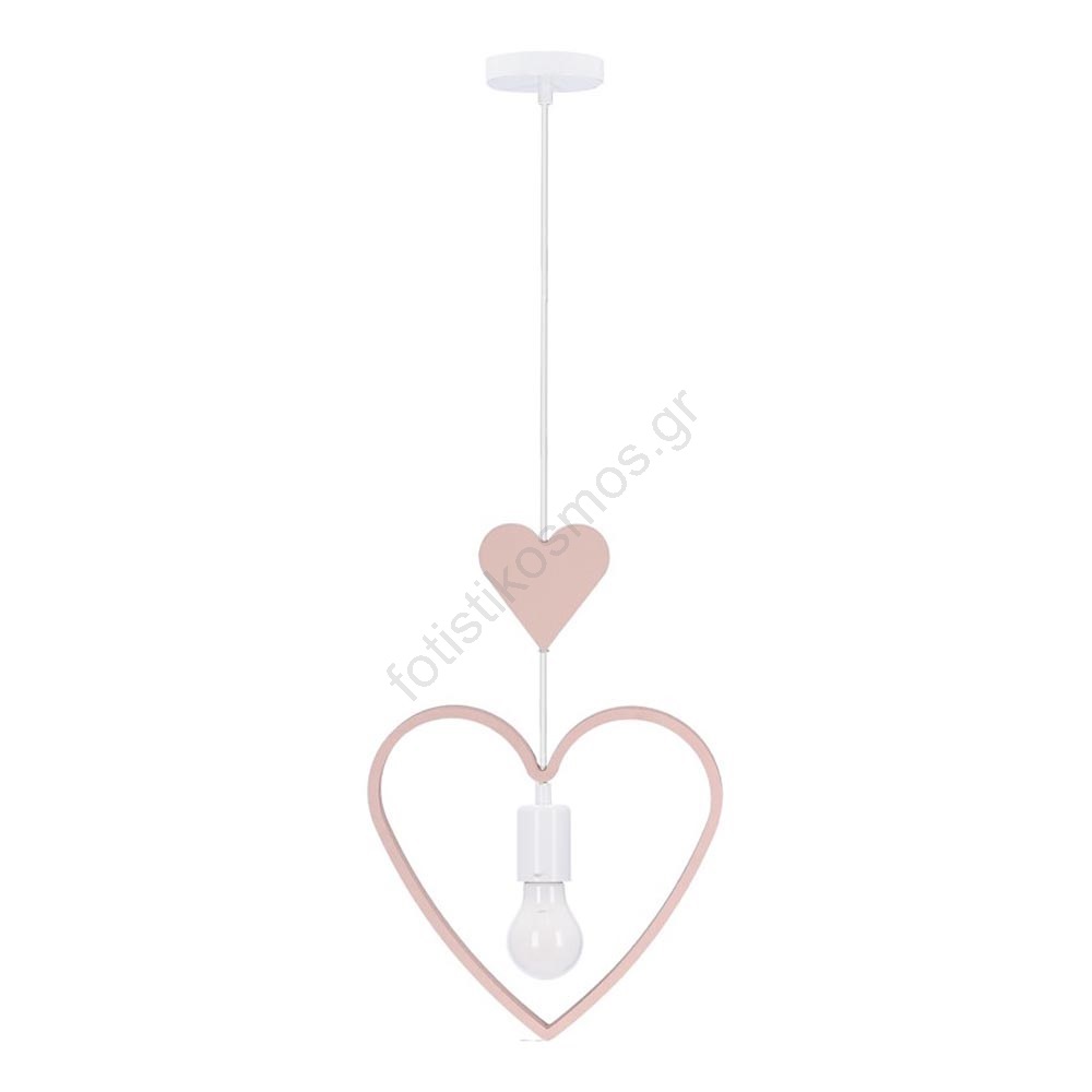 Παιδικό κρεμαστό φωτιστικό HEART με καλώδιο, 1xE27/20W/230V, ροζ/λευκό | Fotisti kosmos