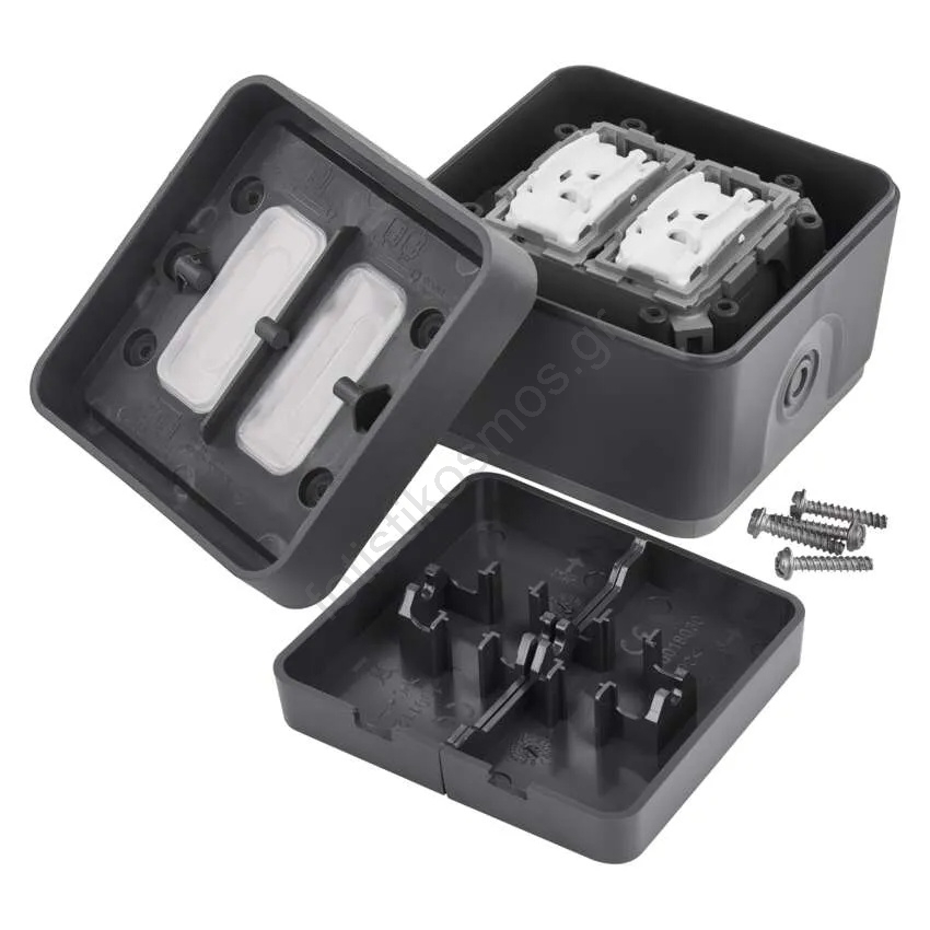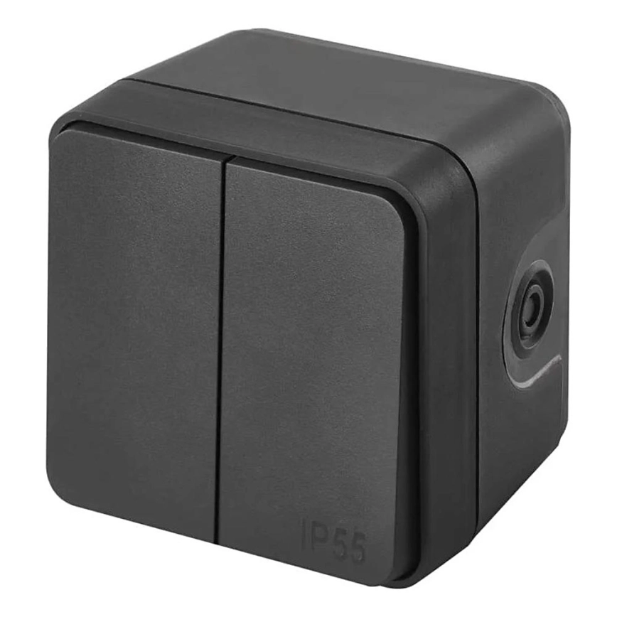 Διακόπτης τοίχου 2 πλήκτρων, εναλλασσόμενος, αρ. 6+6, IP55, ανθρακί