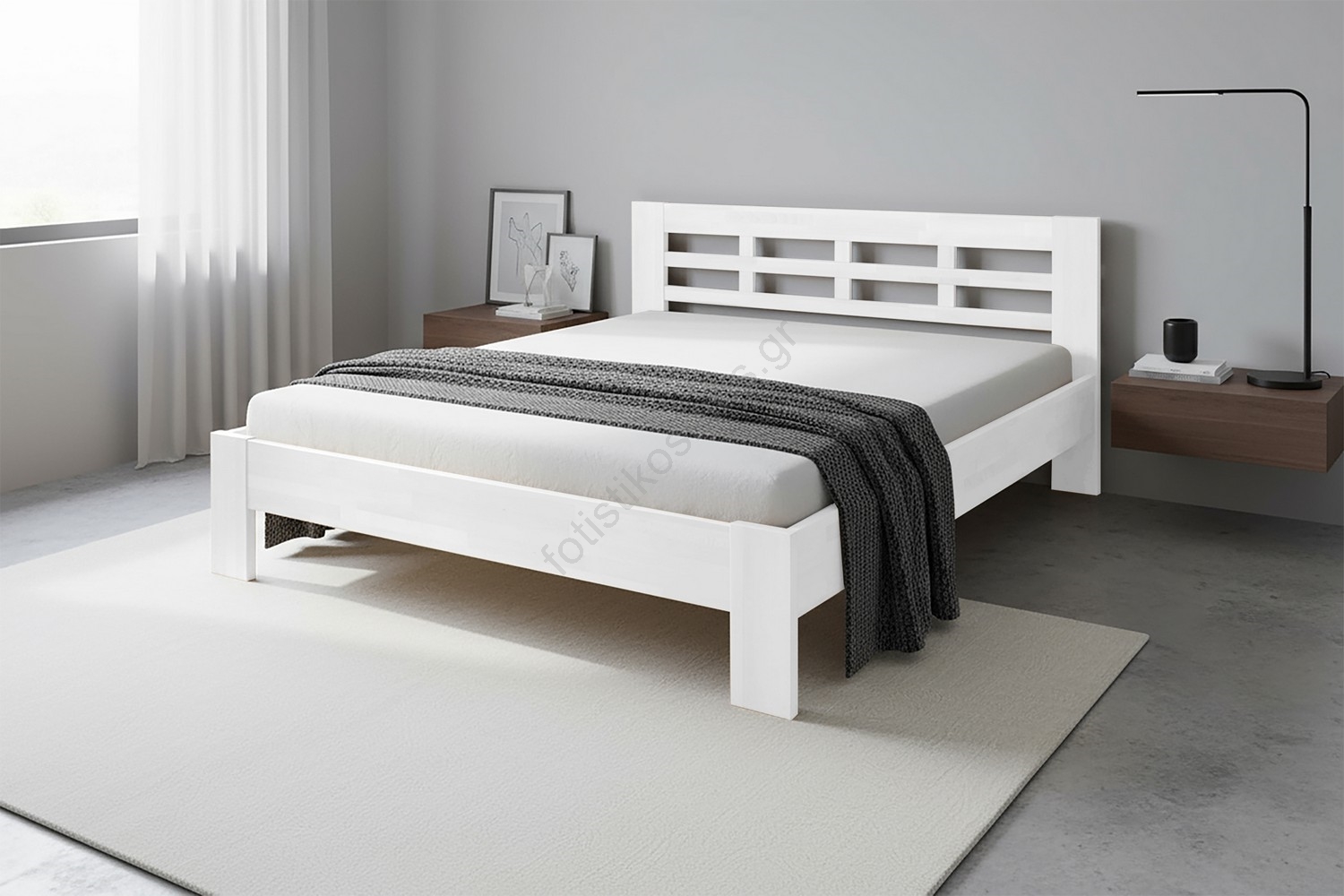 Διπλό κρεβάτι από μασίφ ξύλο ANGELA 180x200 εκ. λευκό | Fotisti kosmos