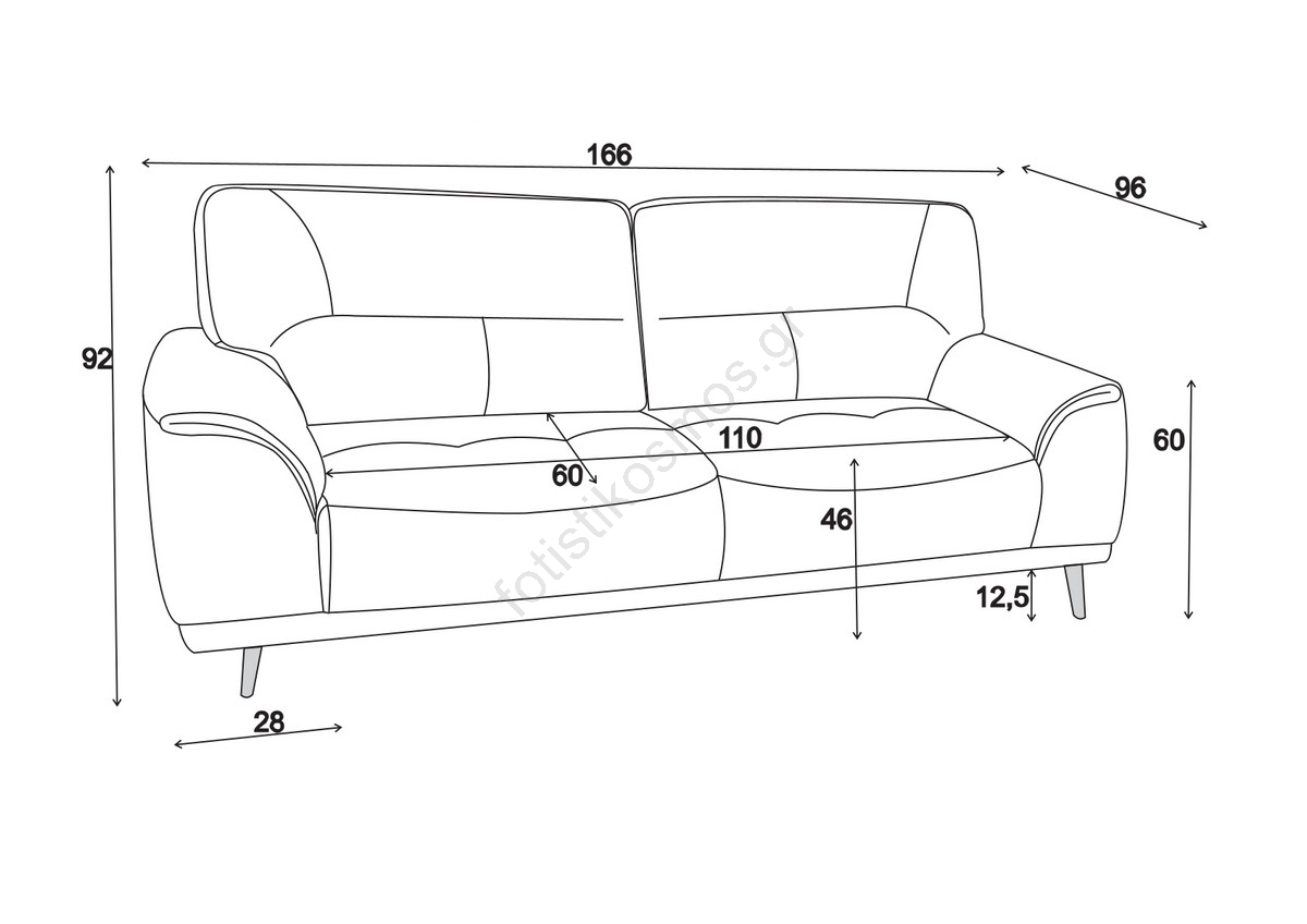 • Με άνετο ύψος καθίσματος 46 εκ. και βάθος 60 εκ., προσφέρει εργονομική και χαλαρωτική καθιστική εμπειρία.