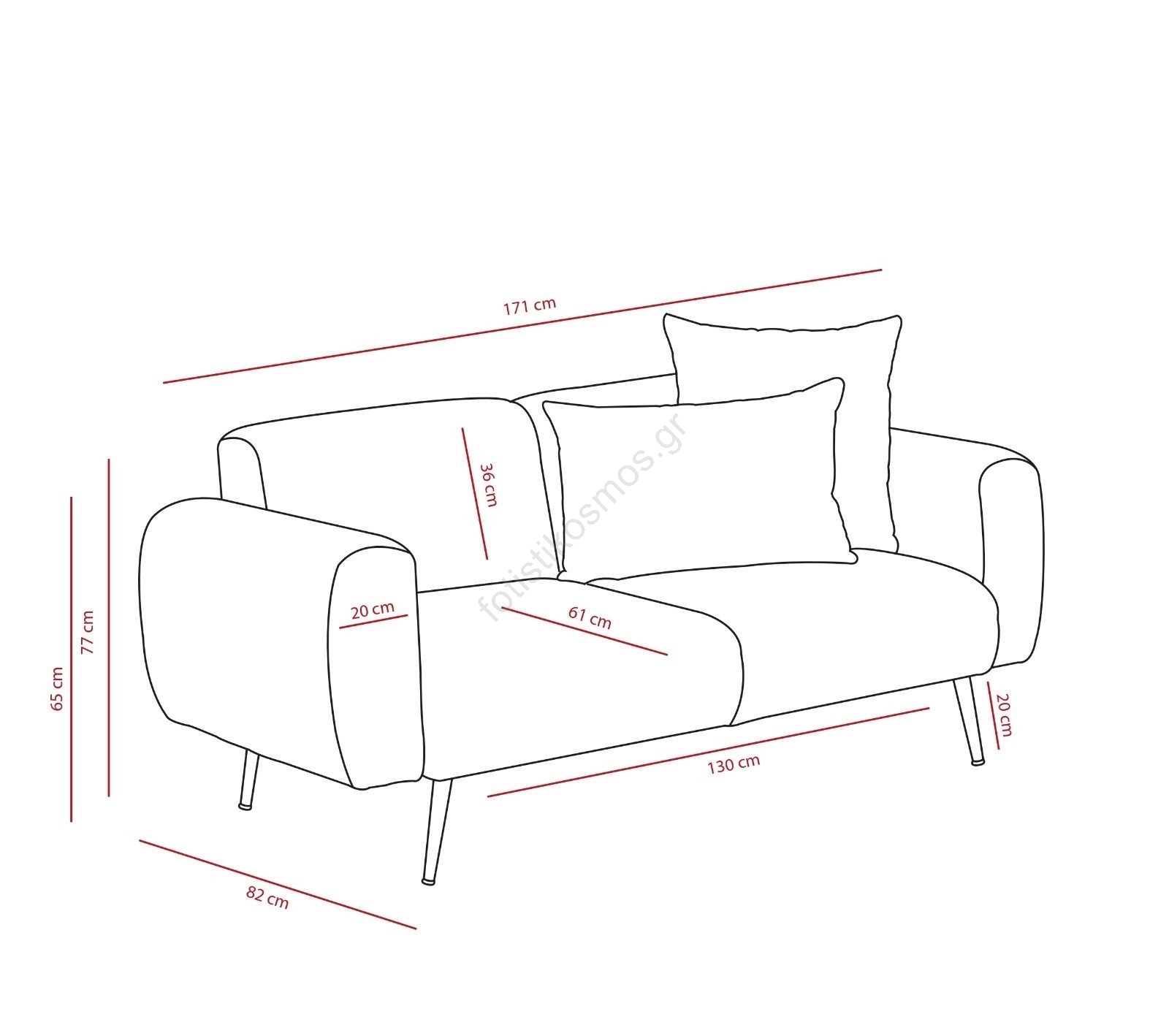 • Διθέσιος καναπές PISA σε ανοιχτό γκρι
