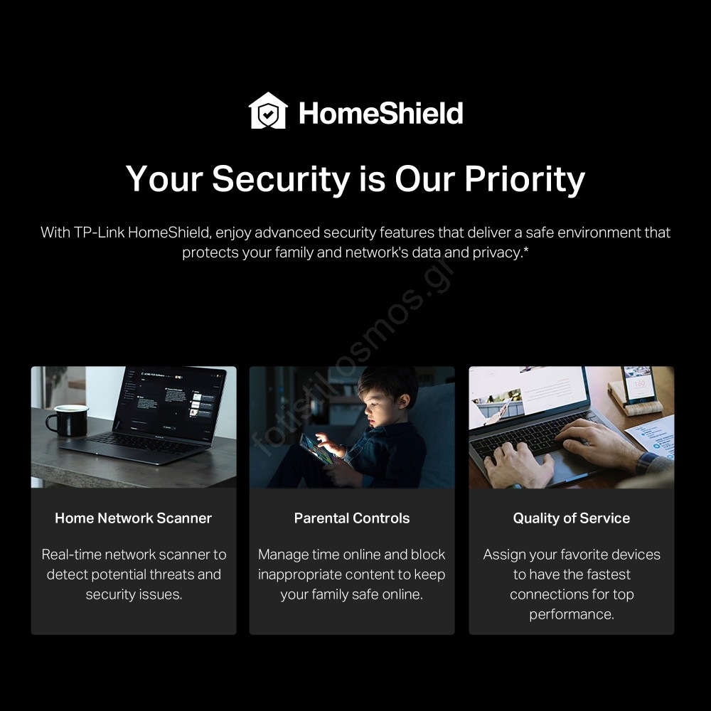 • TP-Link HomeShield - Ενισχυμένη ασφάλεια που προστατεύει από τις πιο πρόσφατες κυβερνοαπειλές.