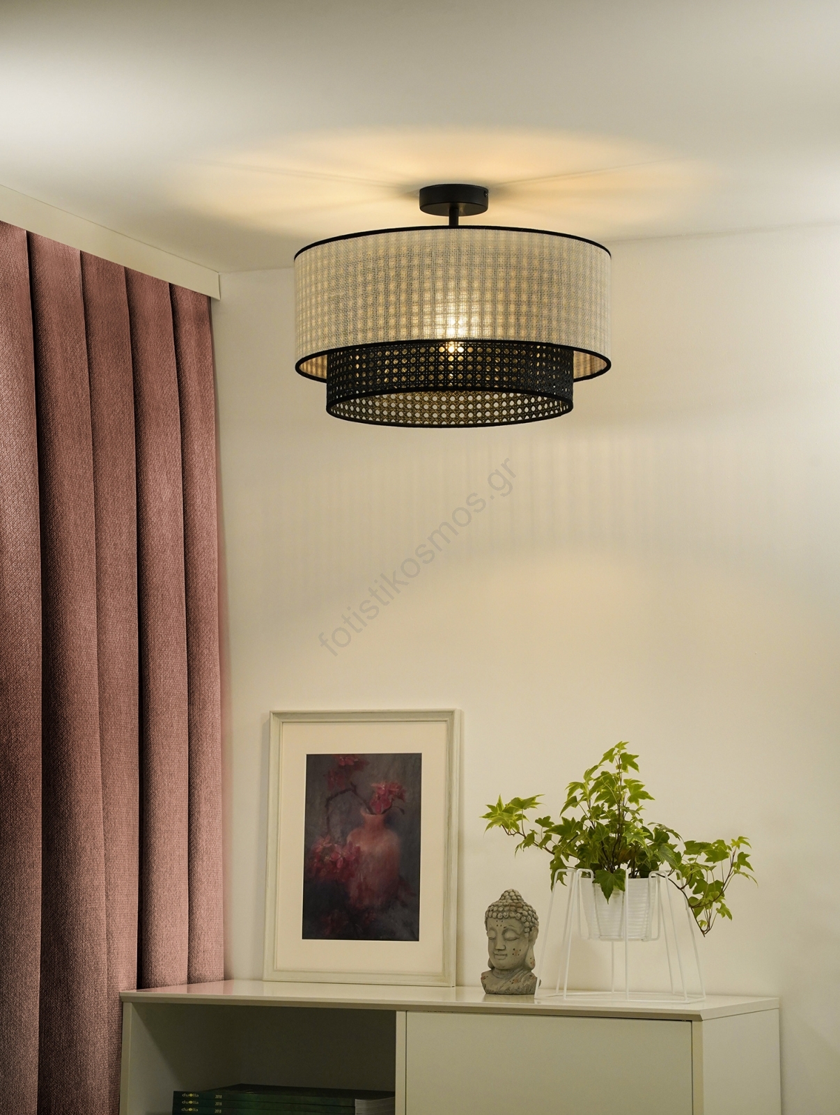 Duolla - Πλαφονιέρα οροφής RATTAN YUTE 1xE27/15W/230V διάμετρος 45 cm κρεμ/μαύρο | Fotisti kosmos