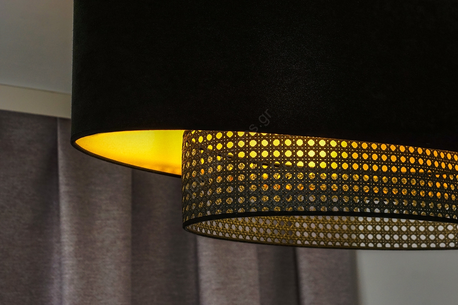 • Duolla - Κρεμαστό φωτιστικό οροφής DOUBLE OVAL RATTAN 2xE27/15W/230V μαύρο/rattan