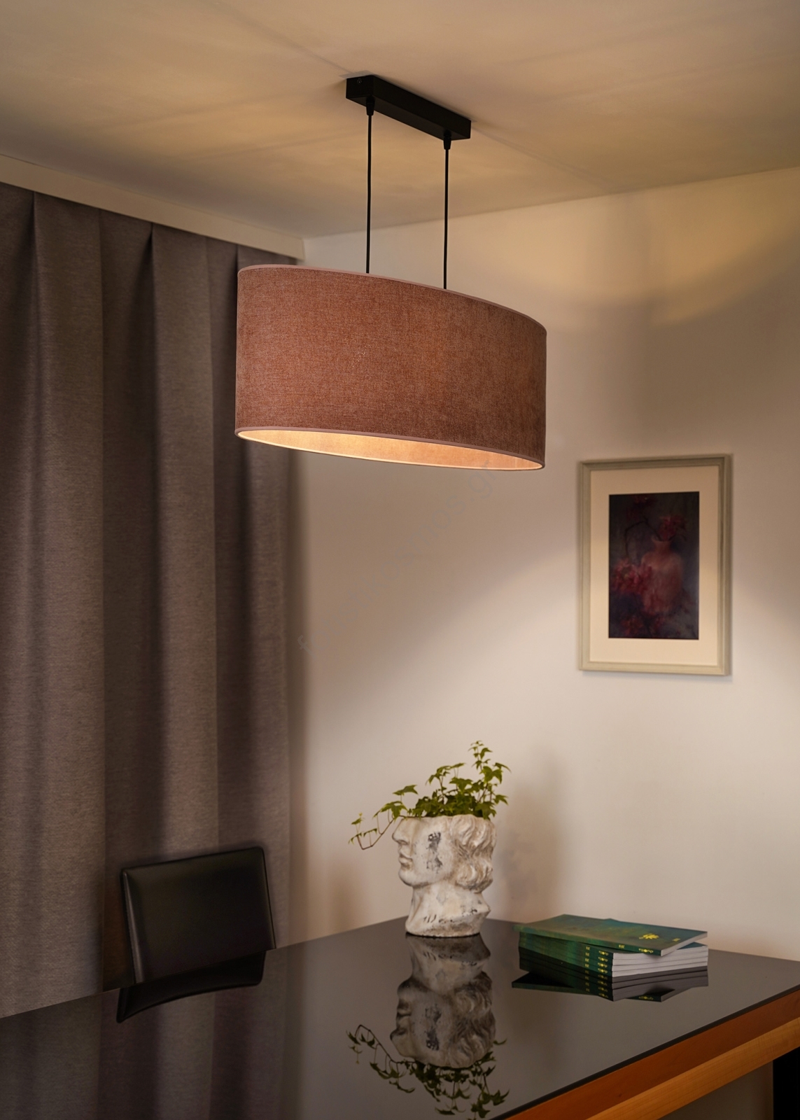 • Duolla - Κρεμαστό φωτιστικό οροφής OVAL 2xE27/15W/230V καφέ