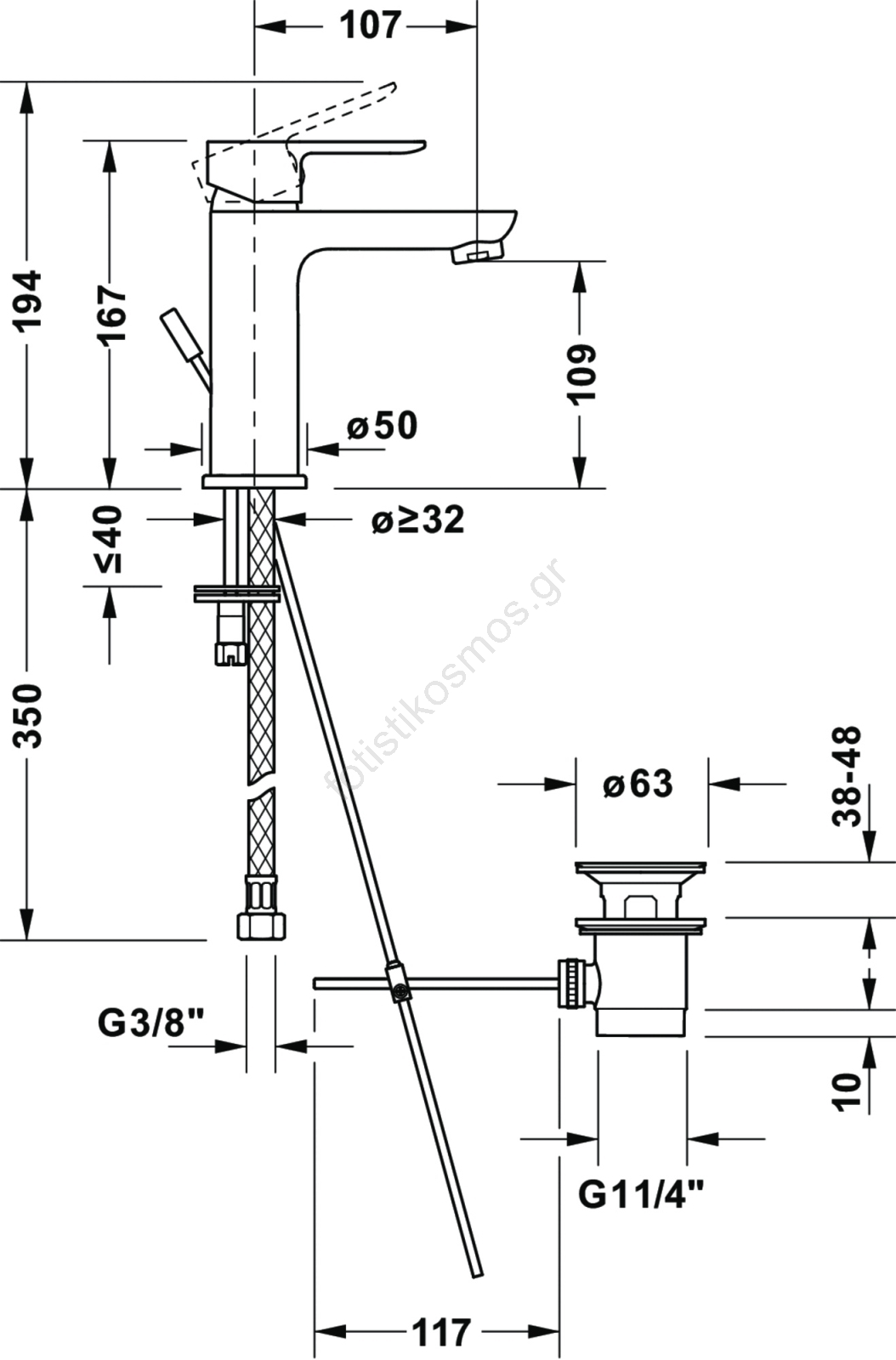 • Η μπαταρία νιπτήρα με μοχλό έχει σχεδιαστεί για τοποθέτηση σε νιπτήρα.