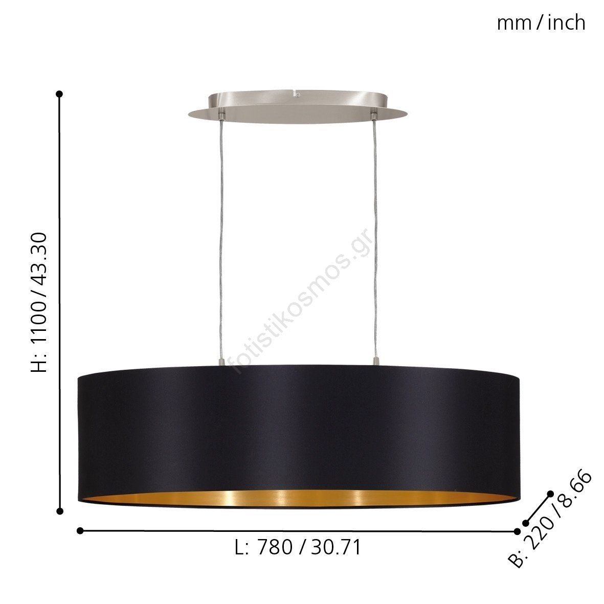 • Eglo 55266 - Κρεμαστό φωτιστικό οροφής MASERLO 2xE27/60W/230V μαύρο