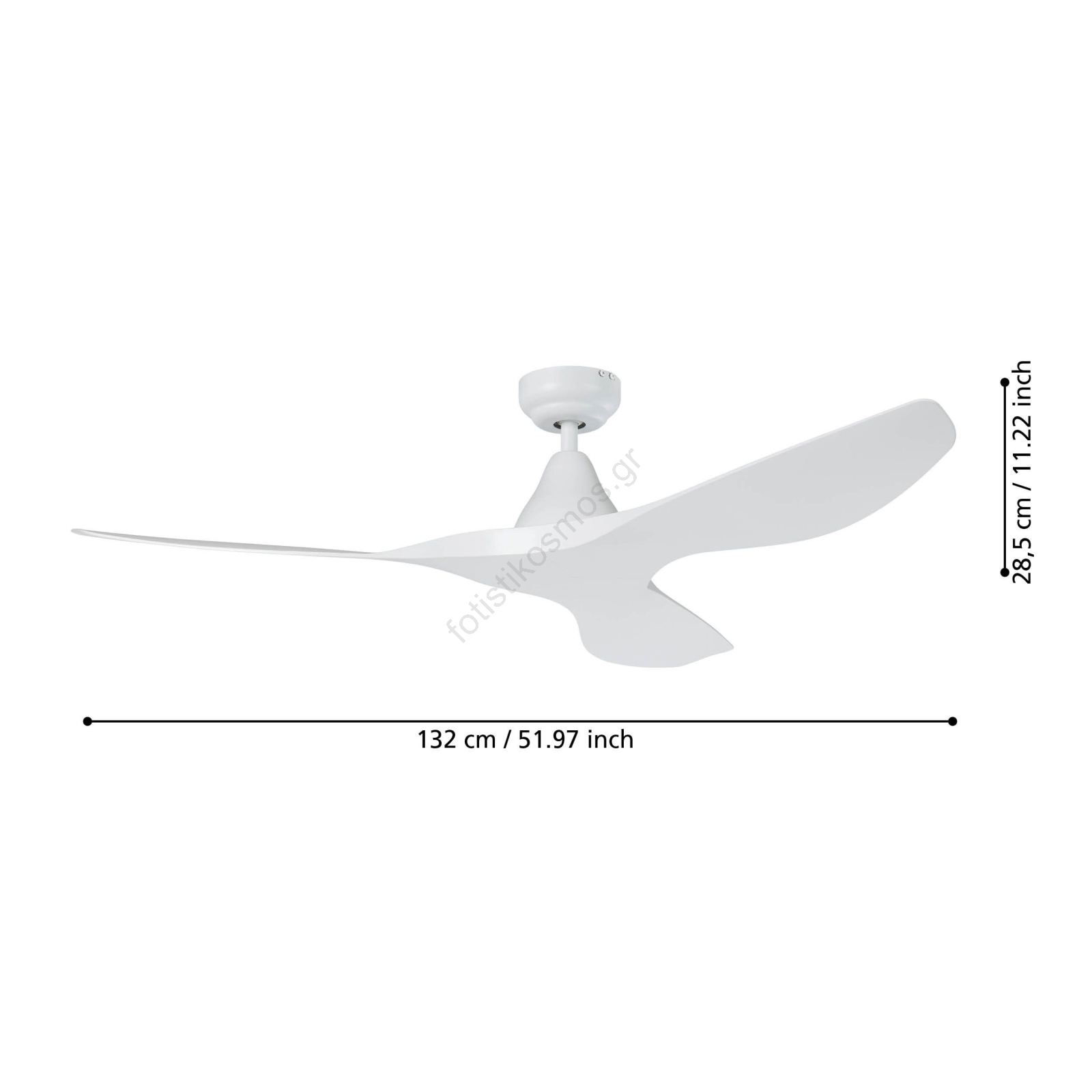 • Eglo - Οροφής ανεμιστήρας Ø 132 εκ., λευκός, με τηλεχειριστήριο