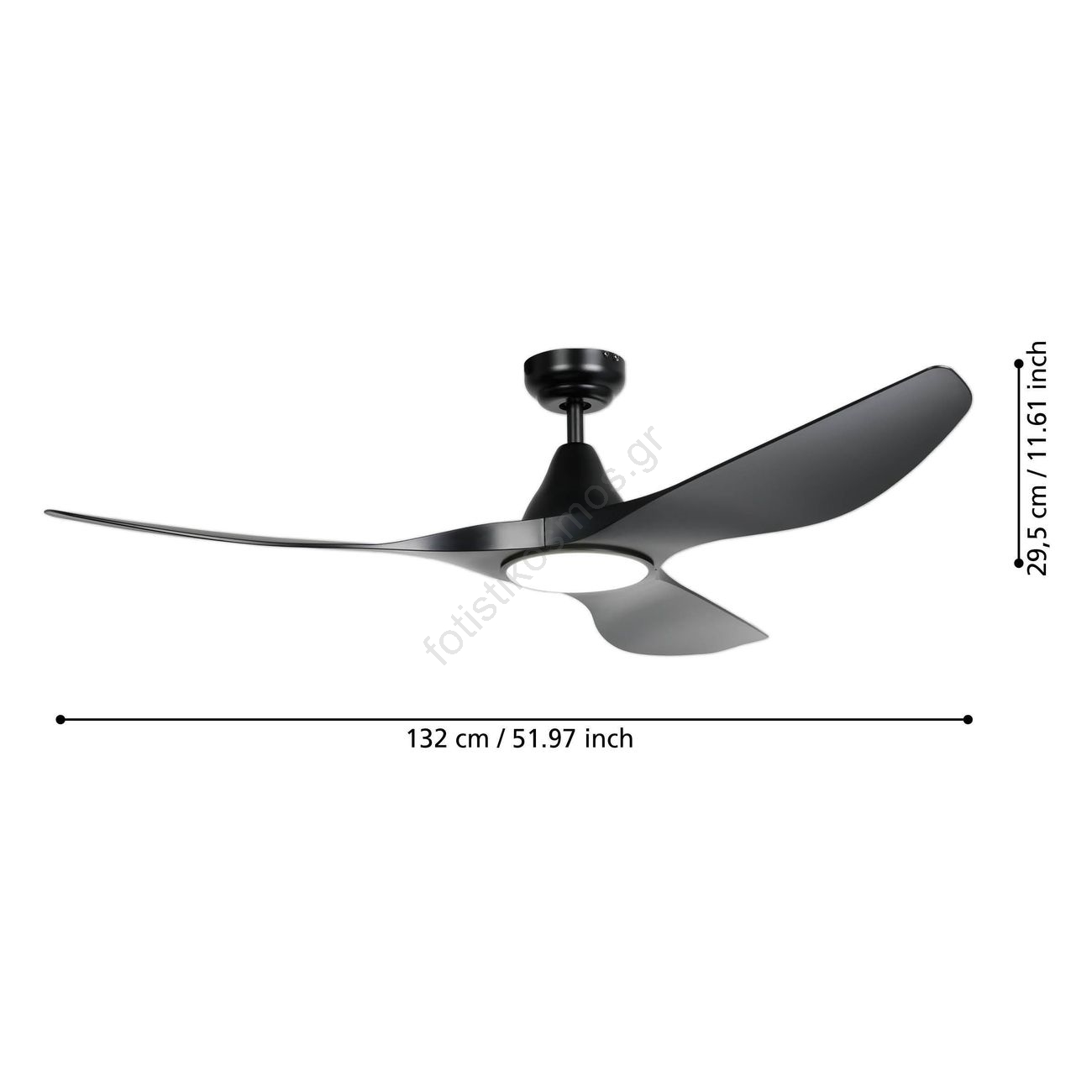 Eglo - Ανεμιστήρας οροφής LED/19W/230V, διάμετρος 132 εκ., μαύρος + τηλεχειριστήριο αποτελεί μια σύγχρονη λύση φωτισμού για το σπίτι σας. Το φωτιστικό εκμεταλλεύεται την Χωνευτό LED module, η οποία παρέχει αποτελεσματικό και χαμηλής κατανάλωσης ενέργειας φωτισμό. Ο σχεδιασμός και η υψηλή ποιότητα του φωτιστικού εξασφαλίζουν μεγάλη διάρκεια ζωής και ικανοποίηση από το φωτισμό σας.