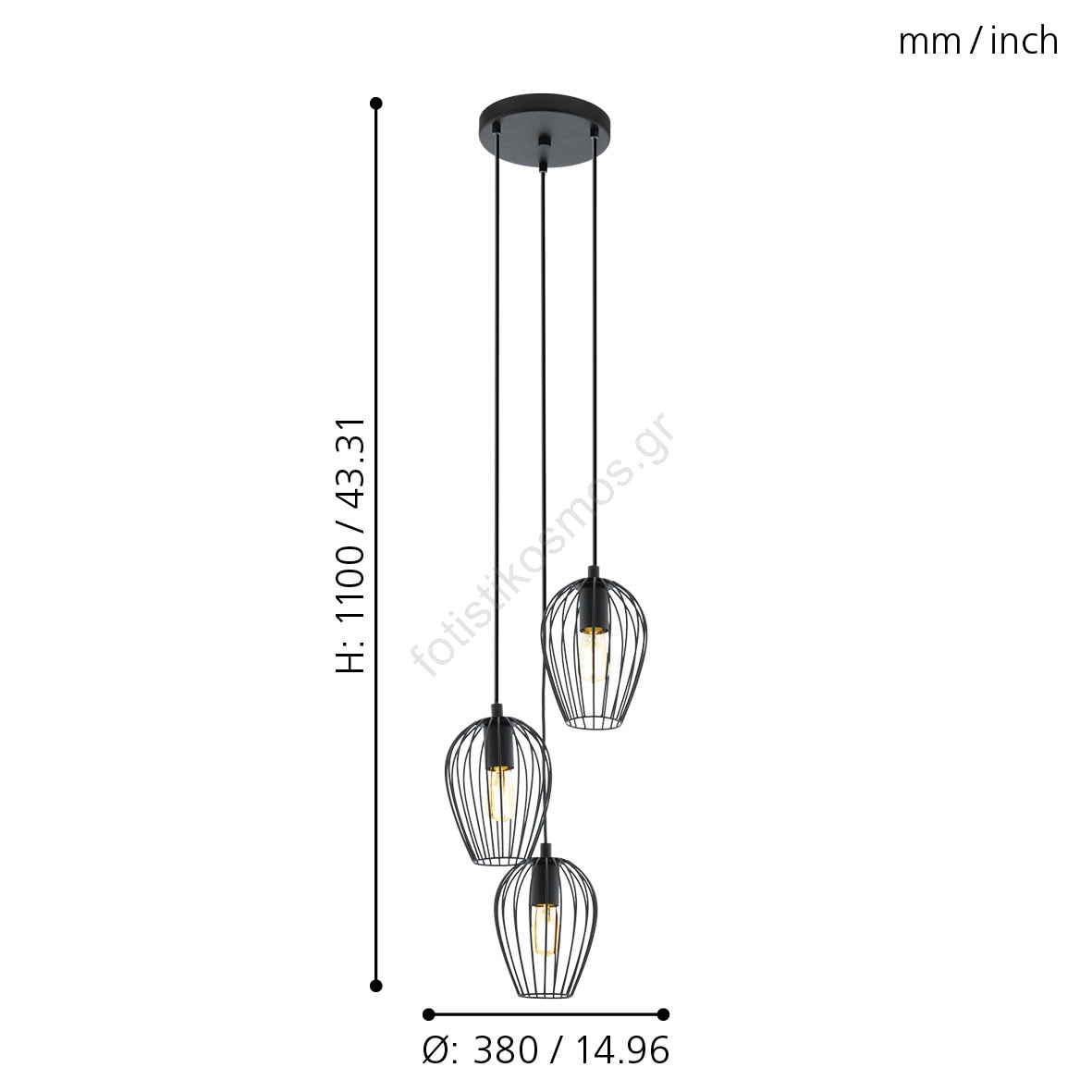 Eglo 49479 - Πολύφωτο NEWTOWN 3xE27/60W/230V | Fotisti kosmos