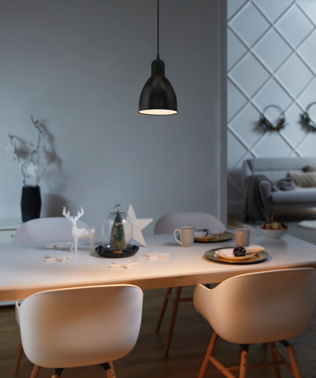 Eglo 55243 - Κρεμαστό φωτιστικό PRIDDY με καλώδιο ανάρτησης 1xE27/60W/230V, μαύρο | Fotisti kosmos