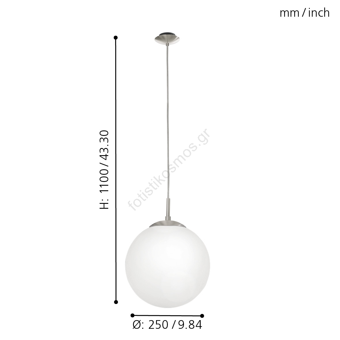 EGLO 85262 - Κρεμαστό φωτιστικό οροφής RONDO 1xE27/60W/230V διάμετρος 25 cm λευκό | Fotisti kosmos