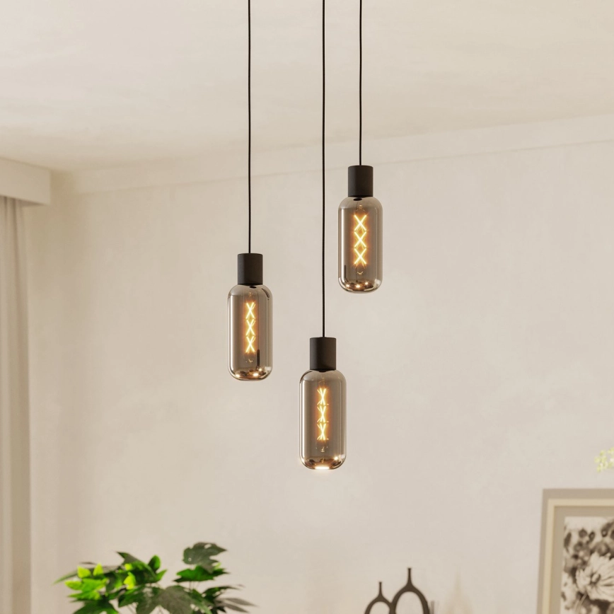 Eglo - Κρεμαστό φωτιστικό με καλώδιο 3xE27/4W/230V μαύρο/καπνιστό