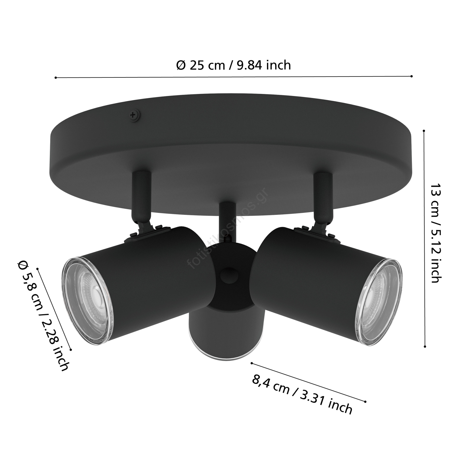 • Eglo - Φωτιστικό μπάνιου με σποτ 3xGU10/5W/230V IP44 μαύρο