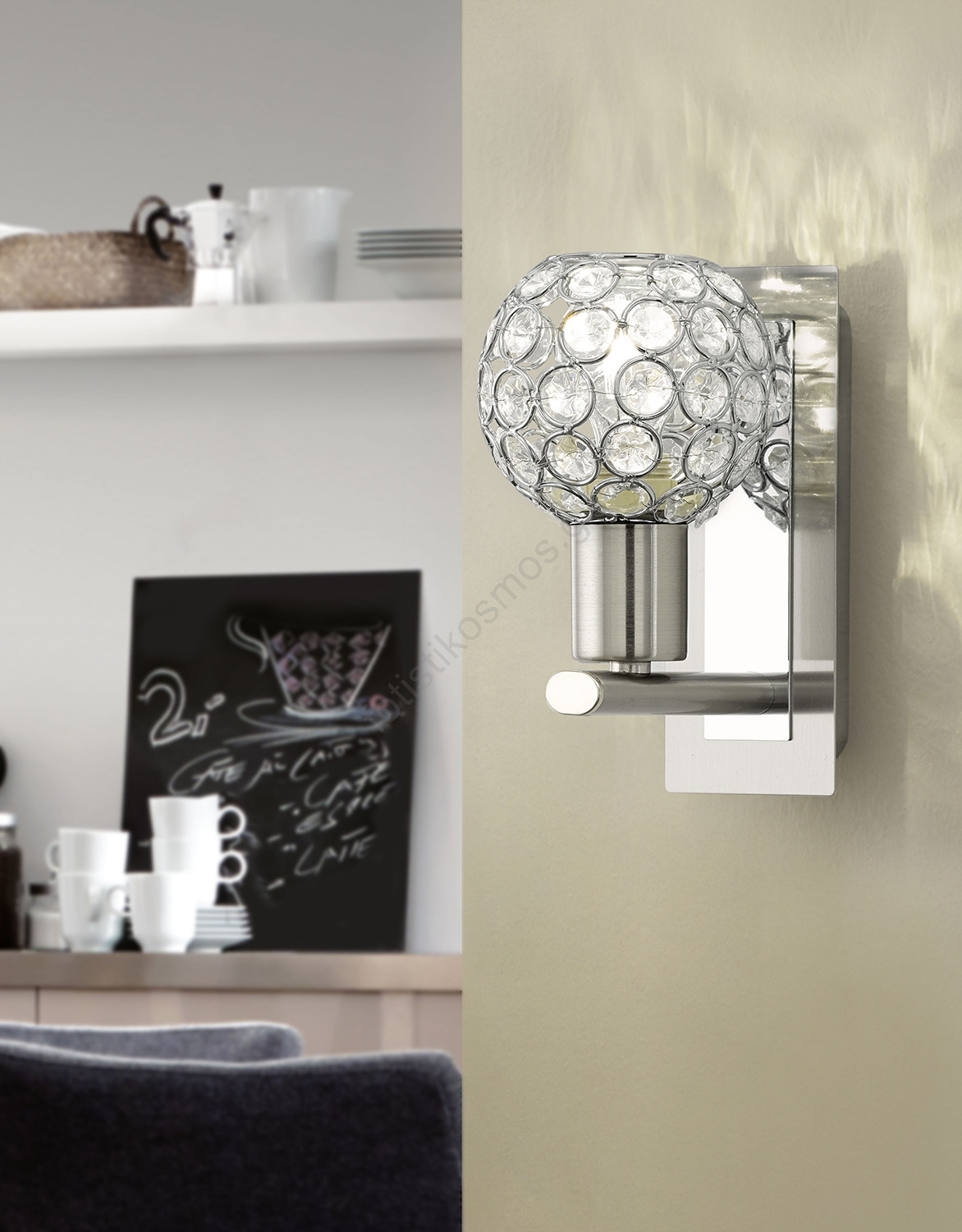 • Αυτό το αμπαζούρ είναι κατασκευασμένο από μέταλλο με φινίρισμα γυαλιστερού χρωμίου και κρύσταλλο.