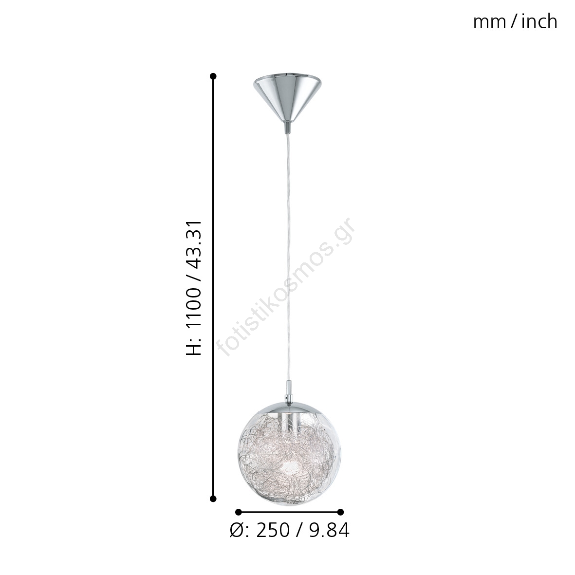 Eglo 93073 - Κρεμαστό φωτιστικό LUBERIO 1xE27/60W/230V Ø 25 cm | Fotisti kosmos