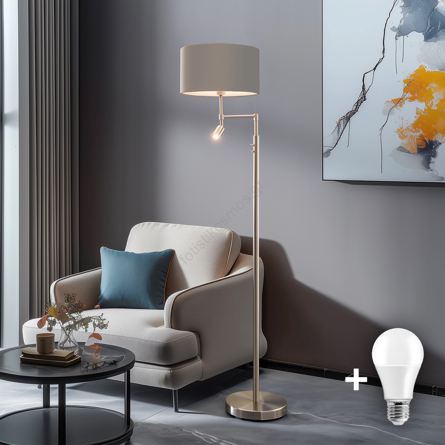 • Eglo - Επιδαπέδια λάμπα LED TUNJA 1xE27/60W/230V + LED/2,1W διάμετρος 38 cm ματ χρώμιο/taupe