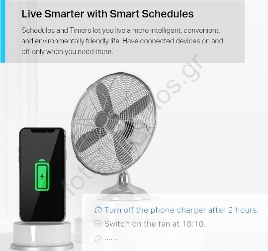 • Έχει απομακρυσμένο έλεγχο μέσω Wi‑Fi ‒ ενεργοποιήστε/απενεργοποιήστε τη συσκευή από οπουδήποτε μέσω της εφαρμογής Tapo.