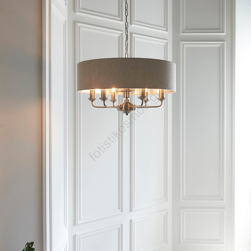 Endon 94357 - Πολυέλαιος με αλυσίδα HIGHCLERE 6xE14/40W/230V μπεζ/ματ χρώμιο | Fotisti kosmos
