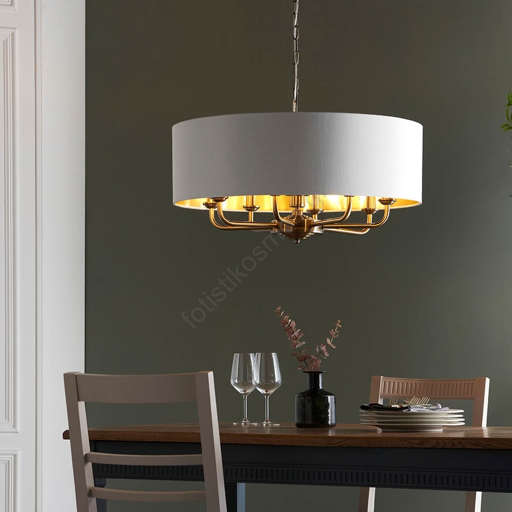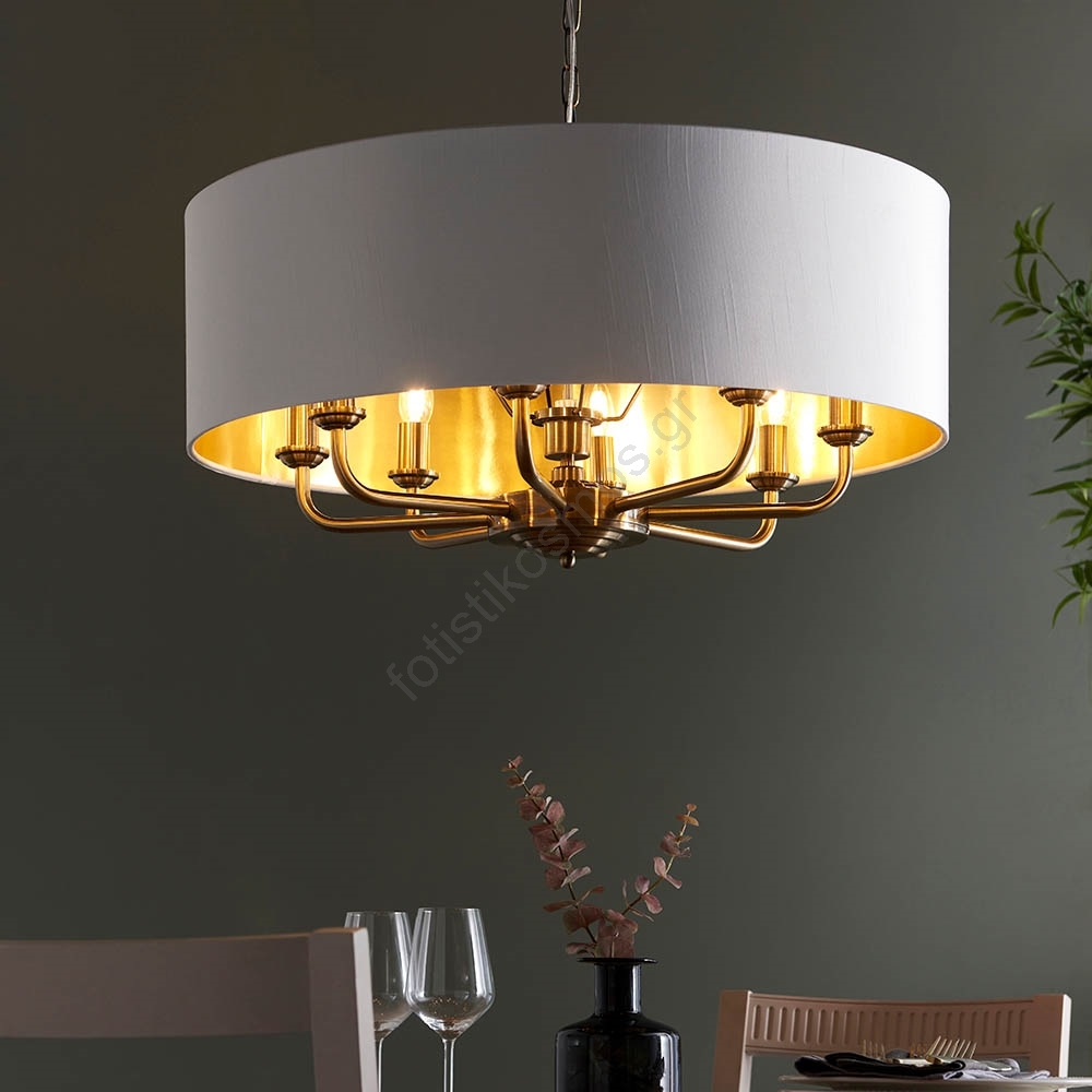 Endon 98938 - Πολυέλαιος με αλυσίδα HIGHCLERE 8xE14/40W/230V διάμ. 70 εκ. λευκό/ορείχαλκος | Fotisti