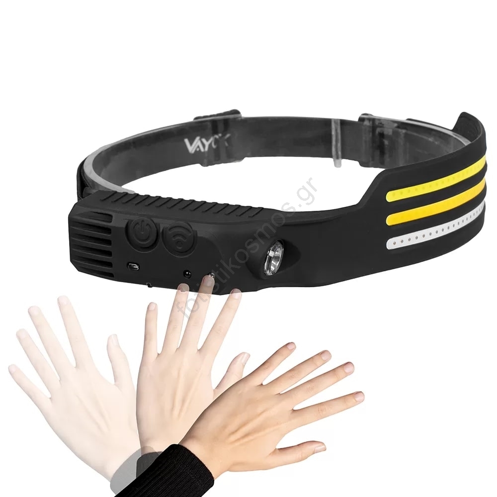 • Επαναφορτιζόμενος φακός κεφαλής LED με αισθητήρα κίνησης.