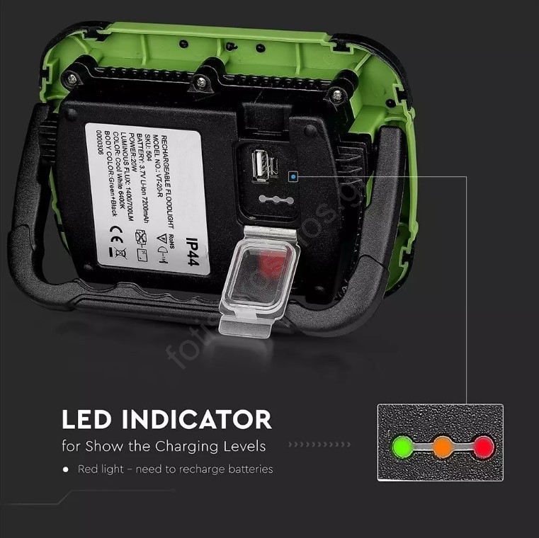 • LED Dimming επαναφορτιζόμενο προβολέας SAMSUNG CHIP + λειτουργία SOS LED/20W/3,7V/USB IP44 4000K 7200 mAh πράσινο