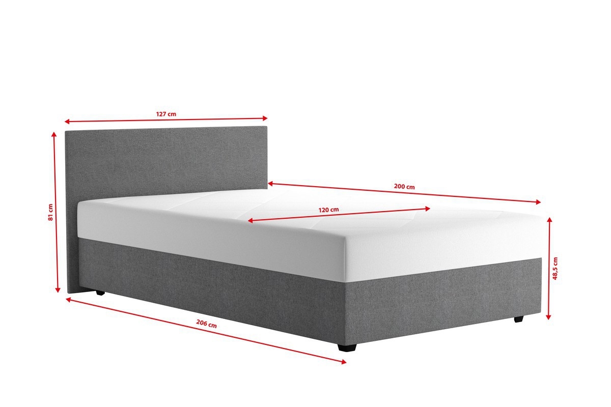 Επενδυμένο κρεβάτι με αποθηκευτικό χώρο και στρώμα DARIA 120x200 cm γκρι