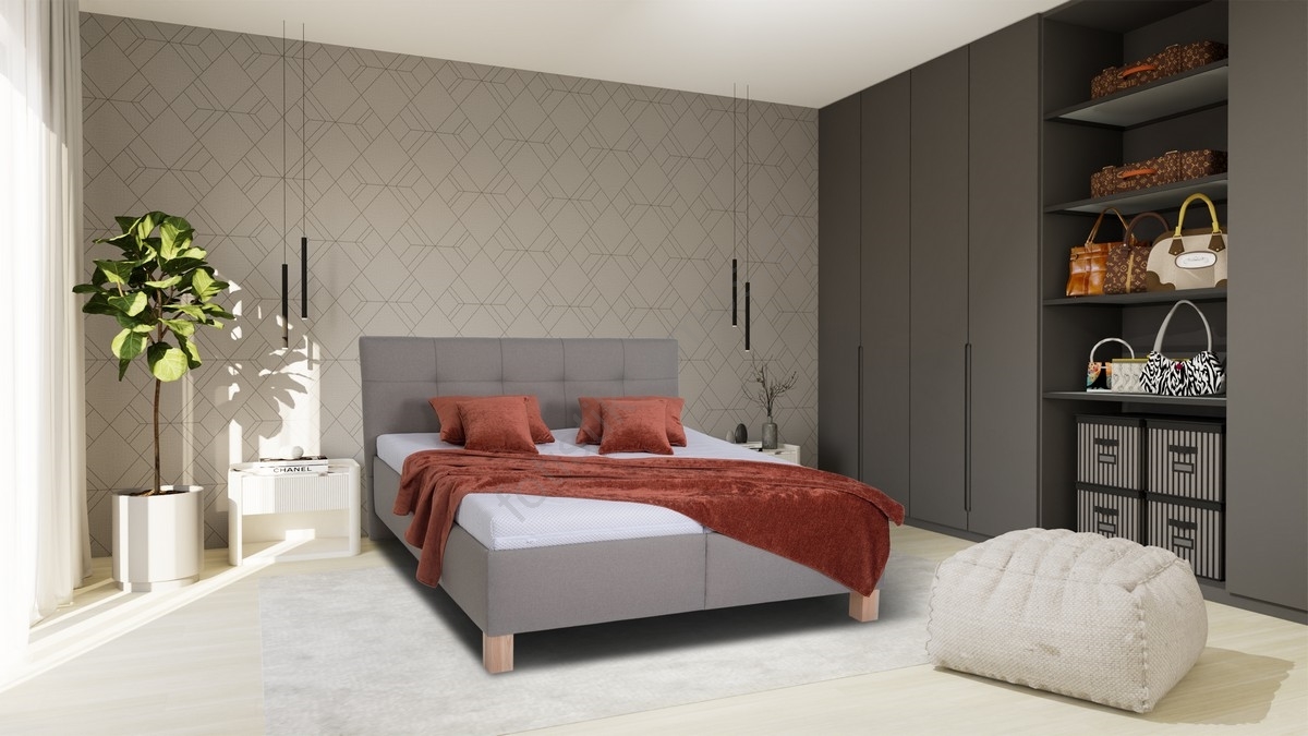 • Ταπετσαρισμένο κρεβάτι MARIA 180x200 εκ. με στρώμα και αποθηκευτικό χώρο, γκρι