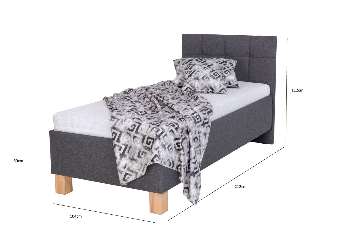 • Επενδυμένο κρεβάτι με στρώμα και αποθηκευτικό χώρο MARIA ONE 90x200 cm ανθρακί