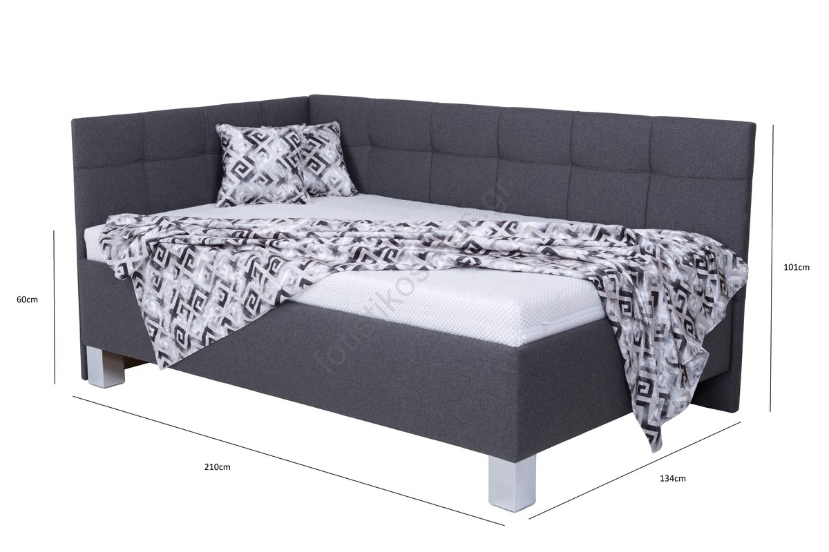 • Επενδυμένο κρεβάτι MARIA PETITE 120x200 εκ. με στρώμα και αποθηκευτικό χώρο, γκρι