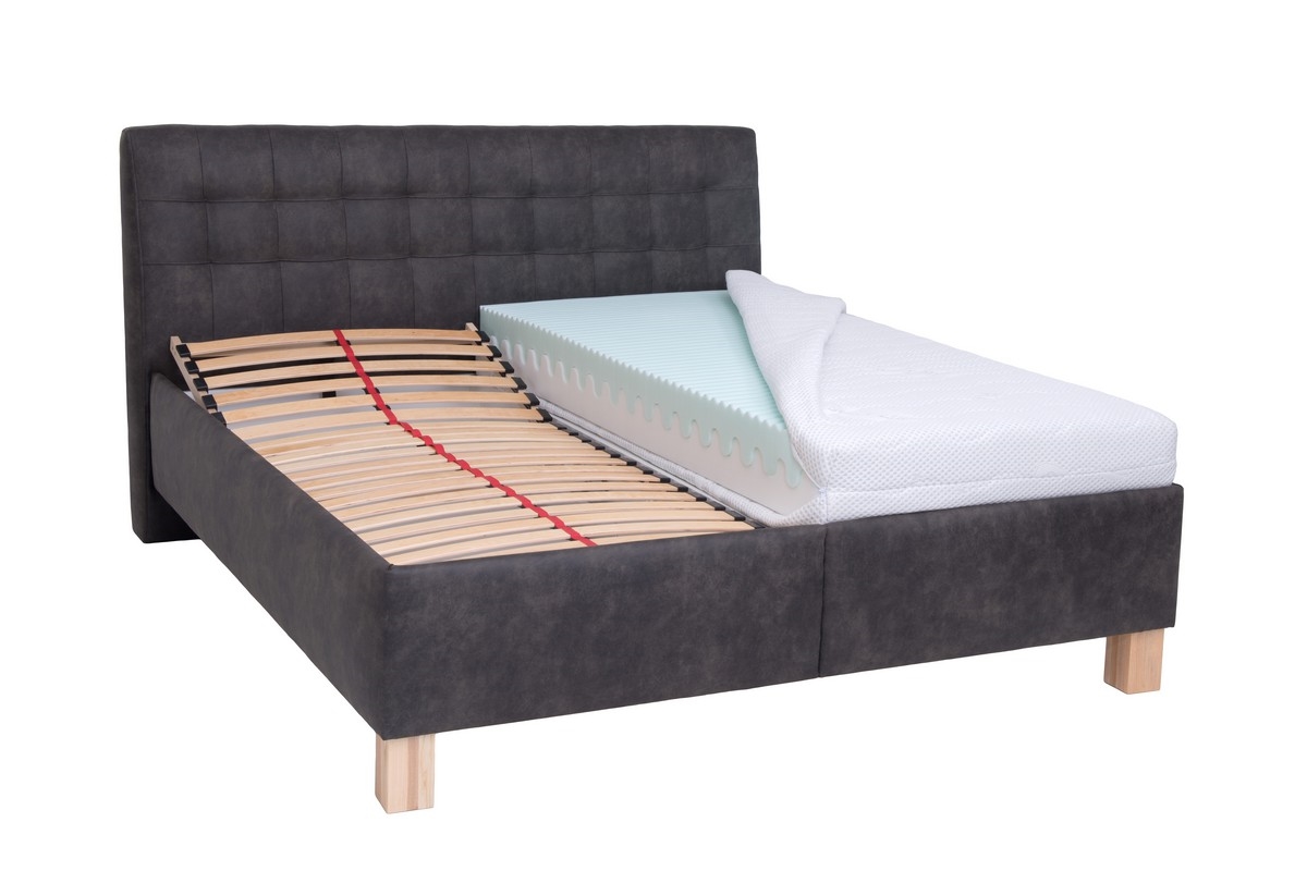 • Ταπετσαρισμένο κρεβάτι VIOLET 160x200 cm με στρώμα και αποθηκευτικό χώρο, σε σκούρο γκρι