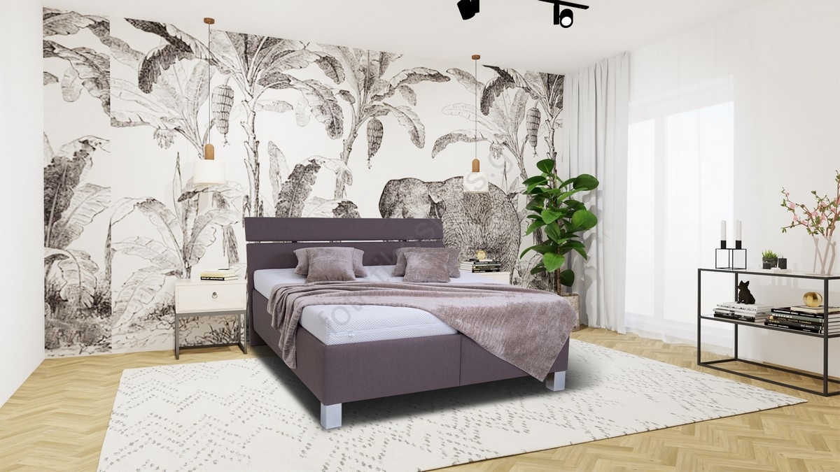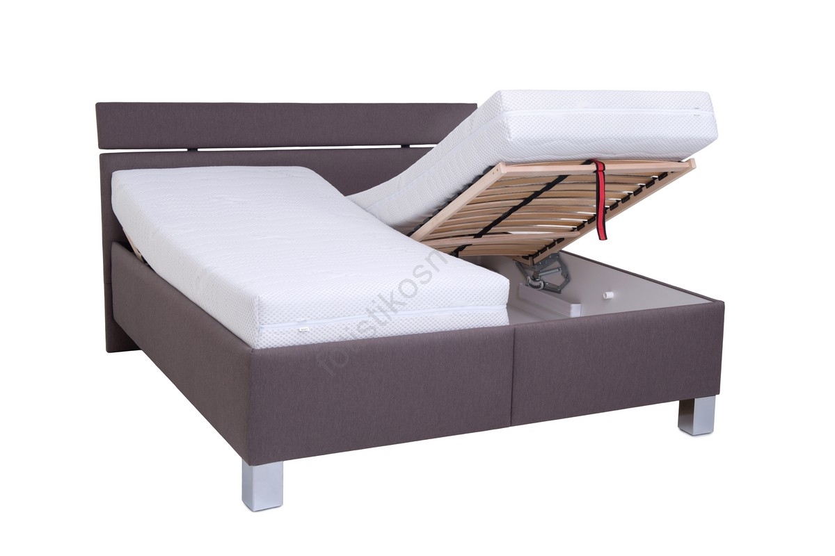 • Επενδυμένο κρεβάτι ALIS 180x200 cm με στρώμα και ενσωματωμένο χώρο αποθήκευσης, σε καφέ απόχρωση