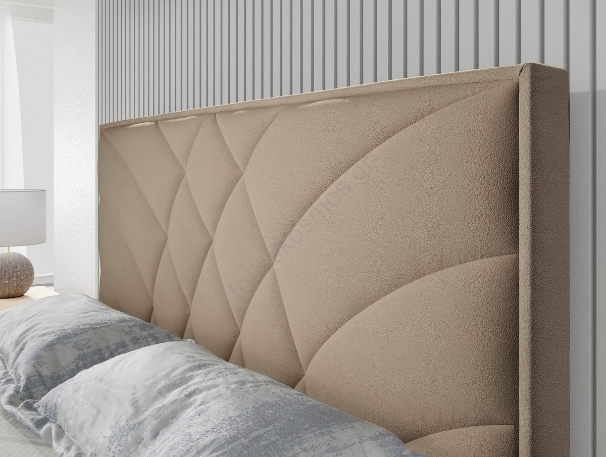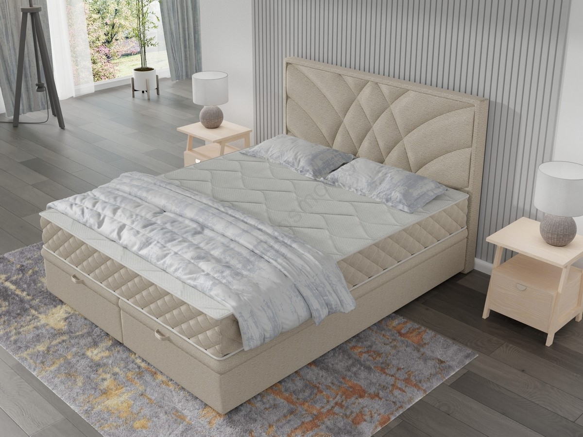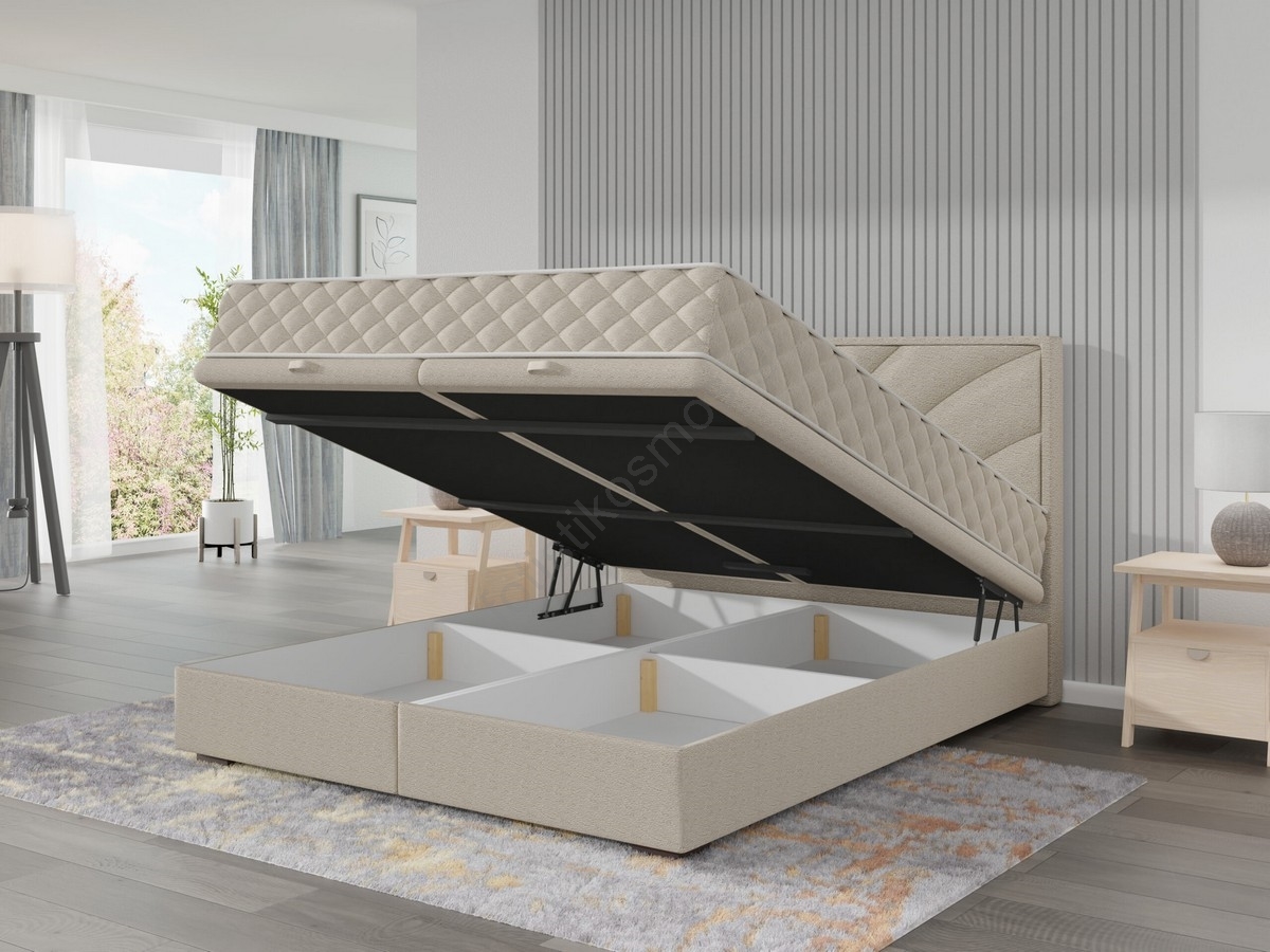 Ταπετσαρισμένο κρεβάτι GINA 160x200 cm με στρώματα και πρακτικό αποθηκευτικό χώρο — κομψό μπεζ | Fot