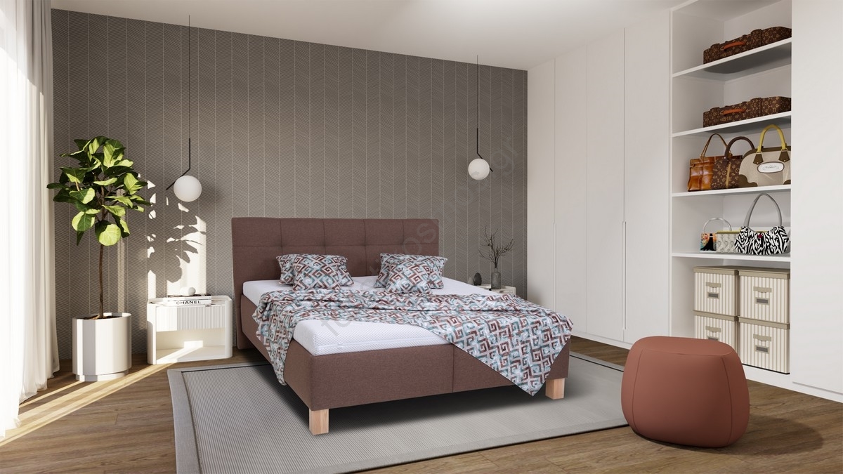 • Ταπετσαρισμένο κρεβάτι MARIA 160x200 cm με στρώμα και αποθηκευτικό χώρο, καφέ