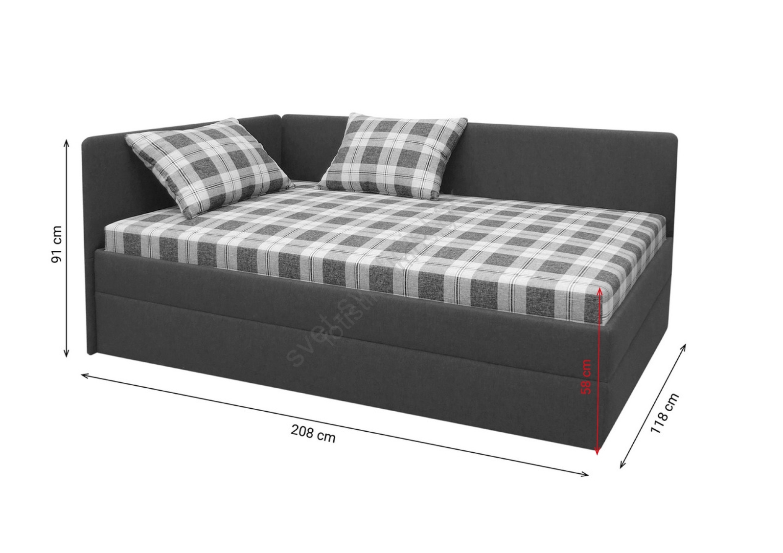 Ταπετσαρισμένο ντιβάνι-κρεβάτι με αναστρέψιμη κεφαλή (αριστερά/δεξιά) ARLY 110x200 cm ανθρακί/λευκό