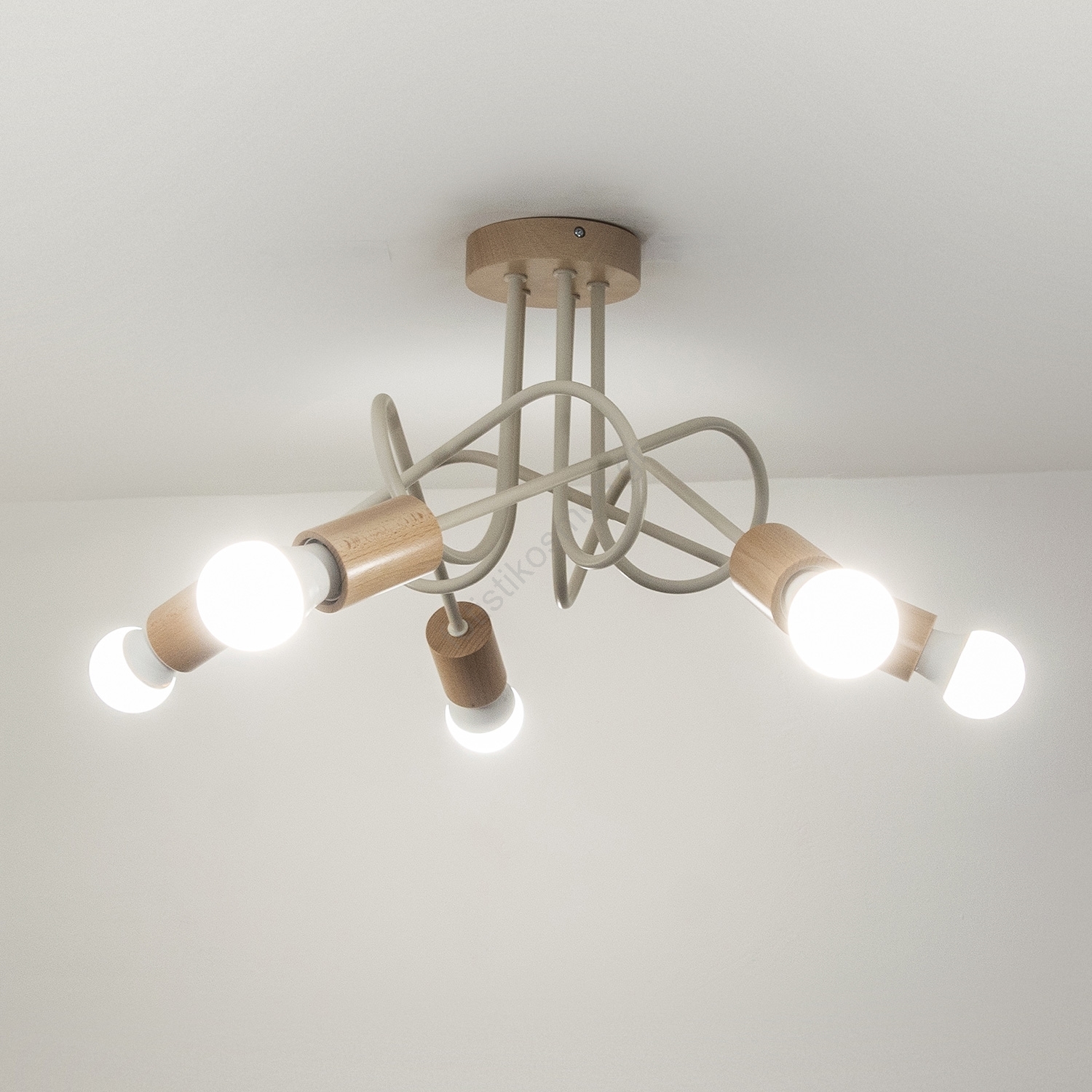 Επιφανειακό φωτιστικό οροφής OXFORD 5xE27/15W/230V πεύκο/κρεμ | Fotisti kosmos