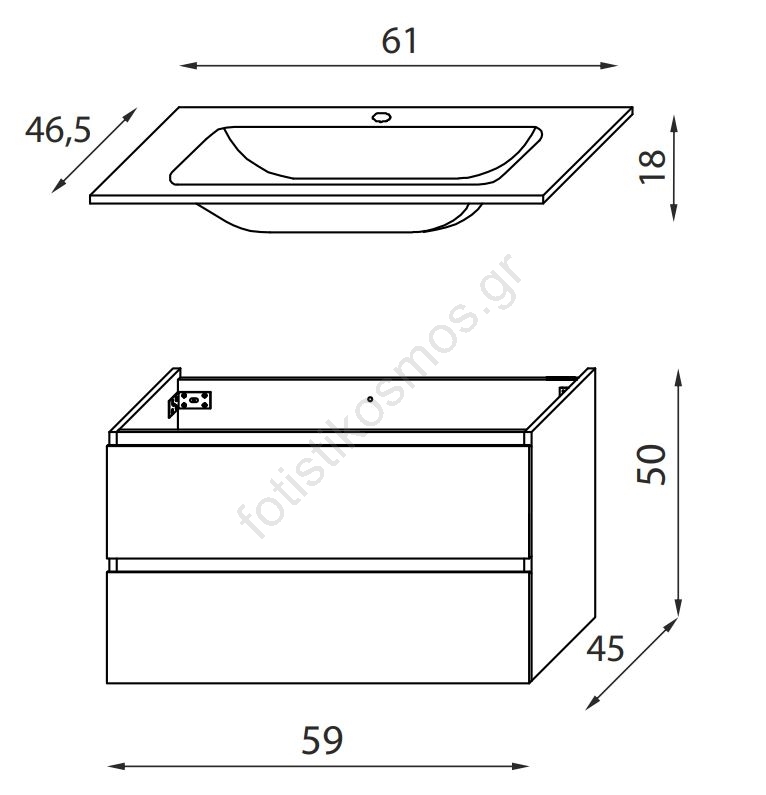 Έπιπλο μπάνιου CONOR 61 cm με νιπτήρα, μαύρο/λευκό | Fotisti kosmos