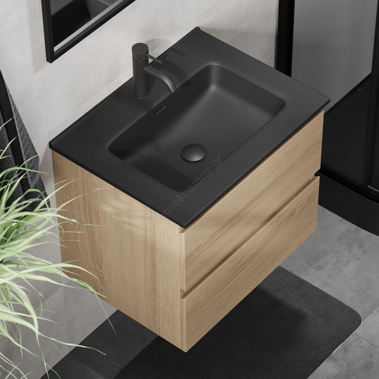 Έπιπλο μπάνιου με νιπτήρα CONOR 61 εκ. δρυς/μαύρο | Fotisti kosmos