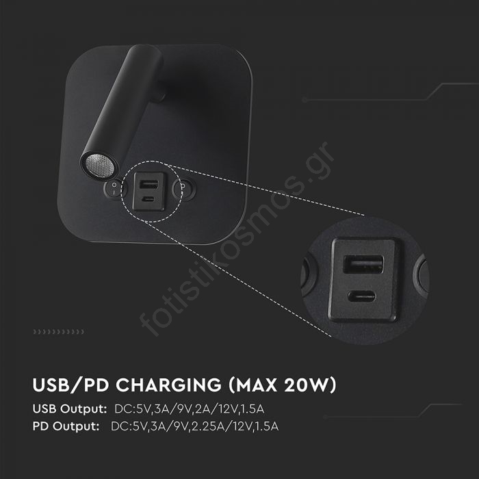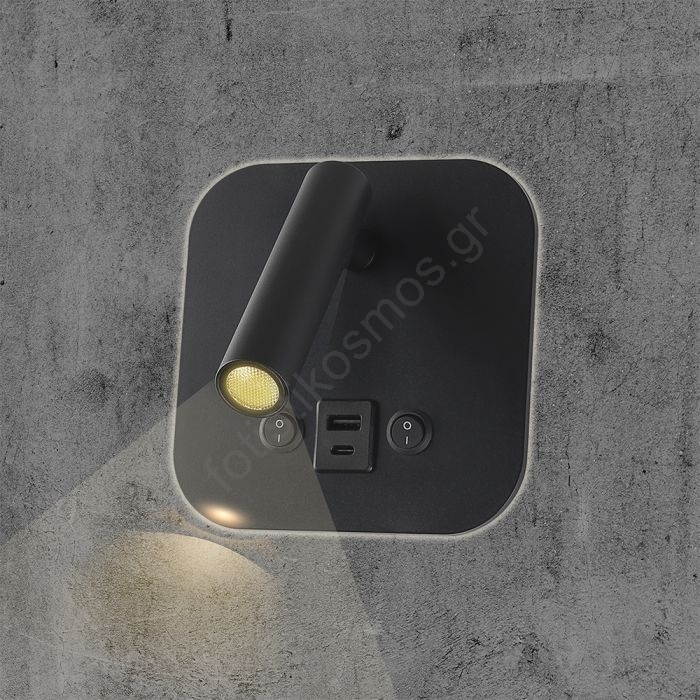 Επιτοίχιο σποτ LED με θύρα USB LED/8W/230V 3000K μαύρο | Fotisti kosmos