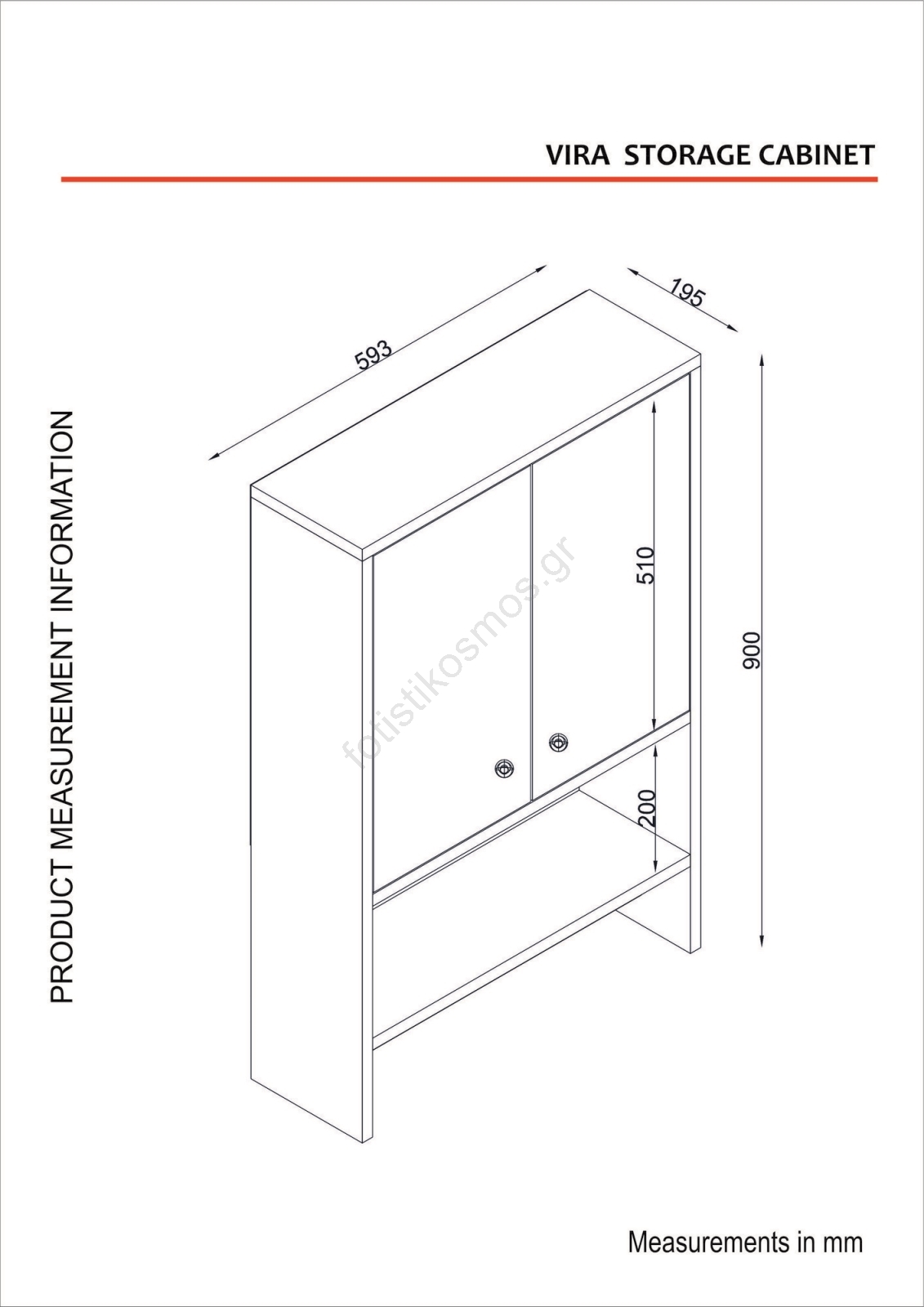 Επιτοίχιο ντουλάπι μπάνιου VIRA 90x59 cm λευκό | Fotisti kosmos