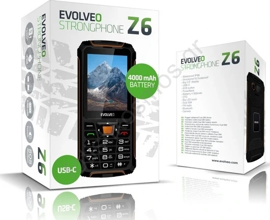 Evolveo - StrongPhone Z6, αδιάβροχο κινητό τηλέφωνο Dual SIM, μαύρο/πορτοκαλί