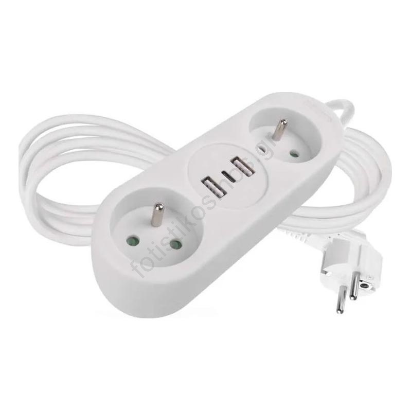 Πολύπριζο προέκτασης ρεύματος με 2 πρίζες, 2x USB-A και USB-C — μήκος καλωδίου 1,4 m | Fotisti kosmo