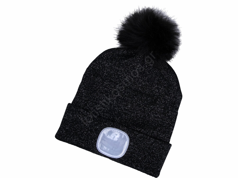 Extol - Σκούφος με φακό κεφαλής και USB φόρτιση 300 mAh μαύρος με φούντα μέγεθος UNI