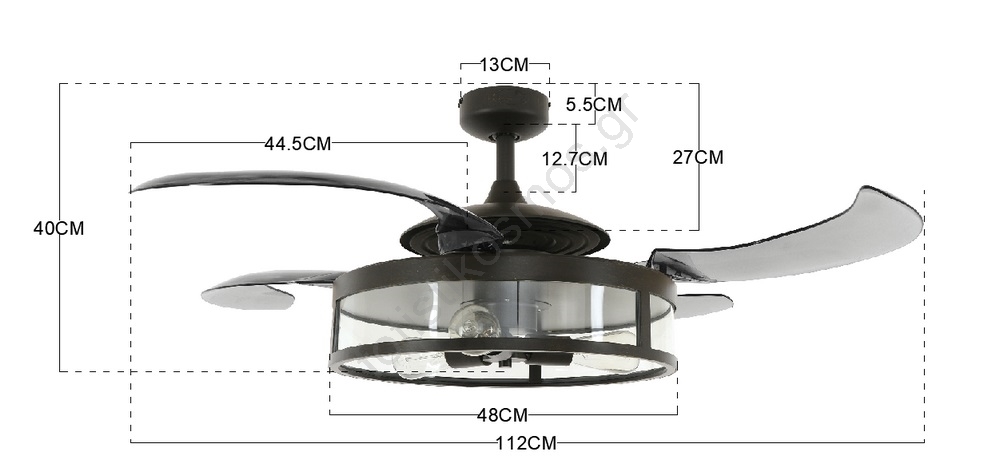 • Μετά το σβήσιμο, τα πτερύγια αναδιπλώνονται πίσω στο σώμα του ανεμιστήρα.