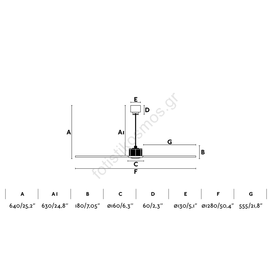 • 6 ρυθμιζόμενες ταχύτητες με κατανάλωση 4-6-9-13-22-32W και 51-77-103-129-155-185 στροφές/λεπτό.