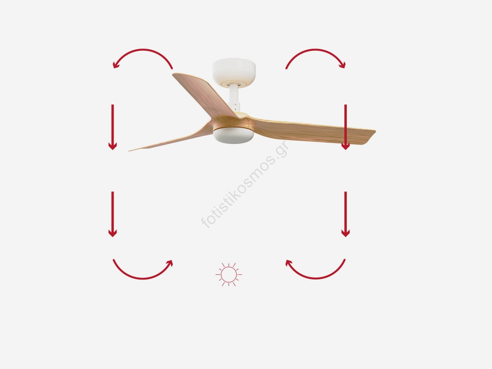 • Αυτός ο ανεμιστήρας διαθέτει λειτουργία αντιστροφής κατεύθυνσης καλοκαίρι-χειμώνας, επιτρέποντάς σας να τον χρησιμοποιείτε και το χειμώνα (εξοικονόμηση έως 20% στα έξοδα θέρμανσης).