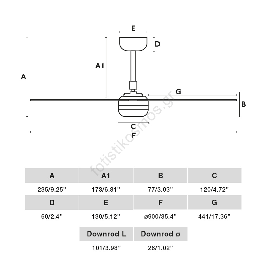 • Οροφής ανεμιστήρας χωρίς φωτισμό.