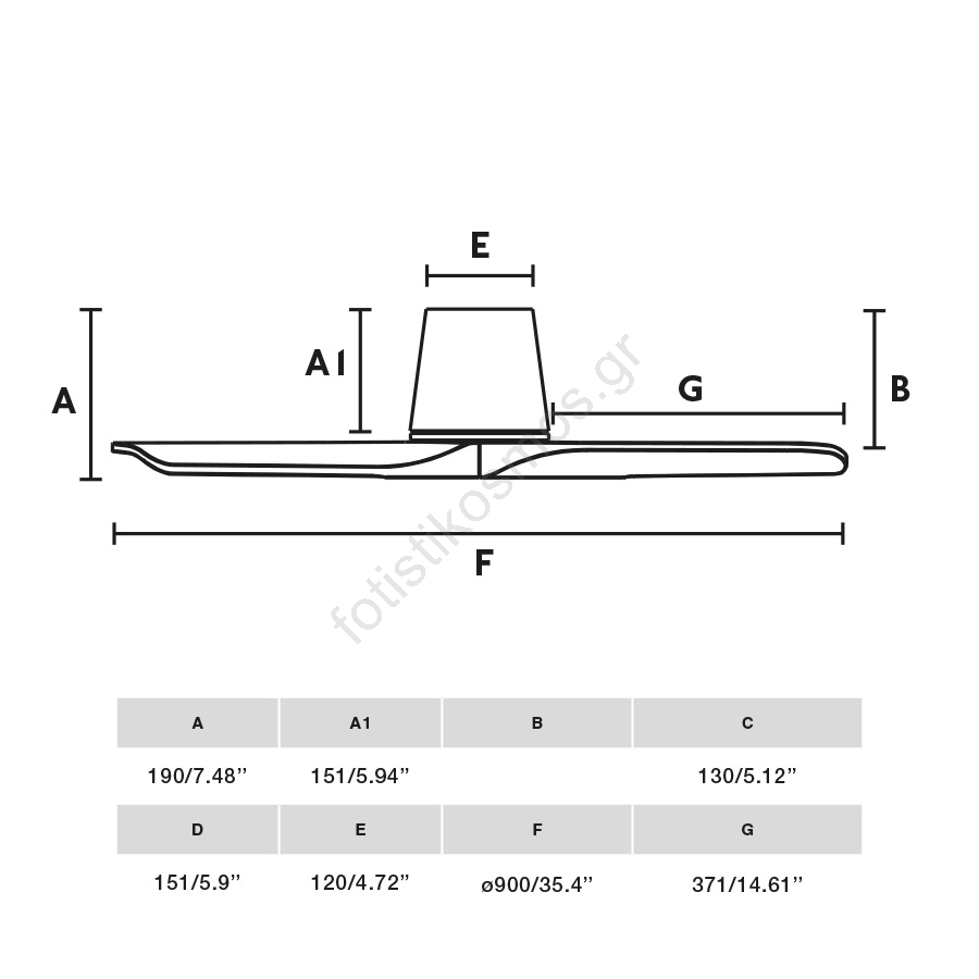 • Οροφής ανεμιστήρας χωρίς φωτισμό.