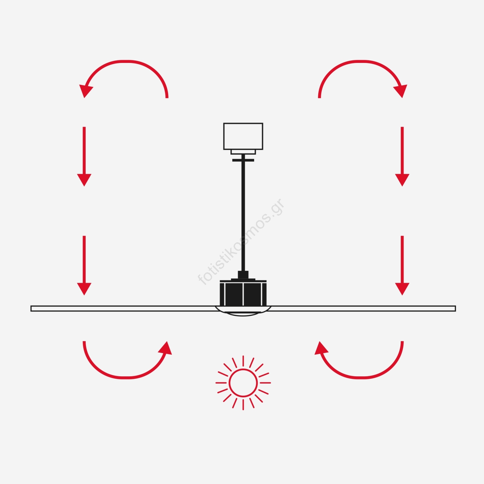 • Αυτός ο ανεμιστήρας διαθέτει λειτουργία αντίστροφης φοράς καλοκαίρι-χειμώνας, επιτρέποντάς σας να τον χρησιμοποιείτε και το χειμώνα (εξοικονόμηση έως 20% στα έξοδα θέρμανσης).