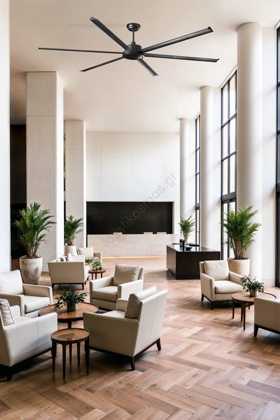 • Σύγχρονος ανεμιστήρας οροφής με μοτέρ συνεχούς ρεύματος.